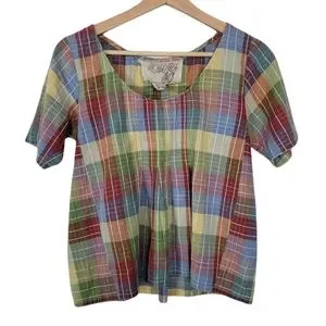 Ace & Jig Cabin Plaid Short Sleeve Top Size XS