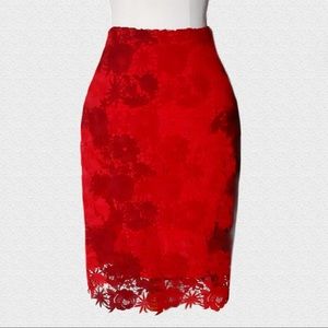 🔥80%OFF🔥SIZE 8 NWT DAVID LAWRENCE Red Zhana Lace Midi Skirt