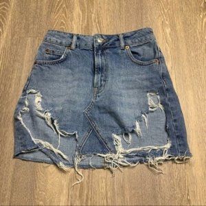 Topshop Moto Denim Distressed Miniskirt