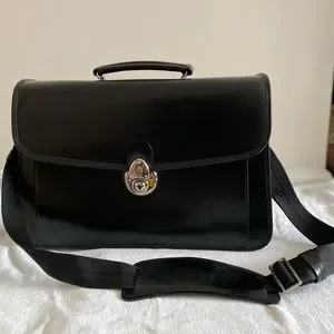 AUTHENTIC Brooks Brothers Black Leather Single Gusset Classic Briefcase
