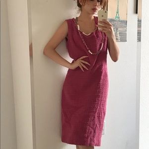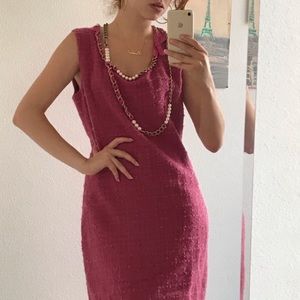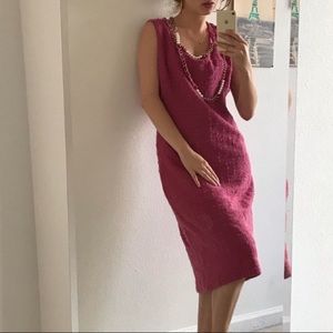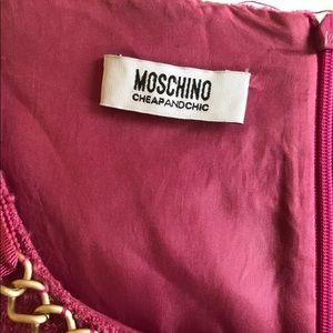 Moschino Cheap & Chic Pink Wool Pearl Chain links Shift Dress Beautiful classic dress with gold chain and pearls necklace detail. It appears to be vintage and it’s in good condition. Fabric 90% wool, 6 % mohair.