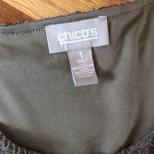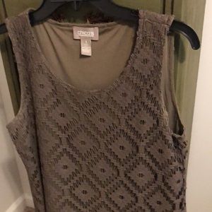 Pictures don’t do this dress justice! Beautiful lace. Sleeveless. 53”from shoulder to bottom. 19” armpit to armpit. Great condition. Chico size 1.