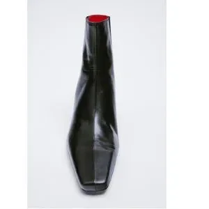 LEATHER ANKLE BOOTS. SIDE ELASTIC GORING. SQUARED TOES. SEAMED DETAIL AT MIDDLE OF UPPER. ROUND METAL HEELS. CONTRASTING COLORED LINING.