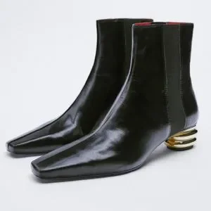 NEW! Zara Metal Trim Heeled Leather Ankle Booties