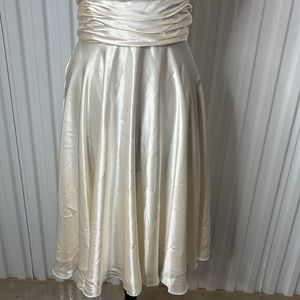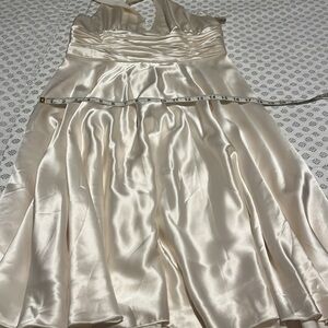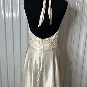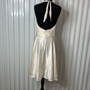 Beautiful Cream 100% silk halter fit & flare dress with back hidden zipper. Excellent condition no visible stains or holes. Measurements are approximate