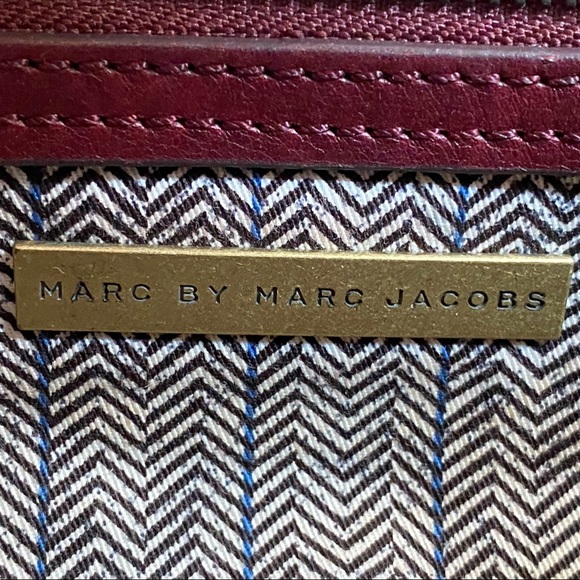Marc Jacobs Burgundy red leather gold hardware flap open top handles purse bag