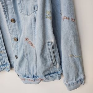 PAC SUN - Y2K Embroidery Sayings Jean Jacket with Pockets Large