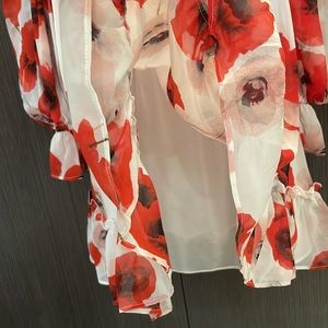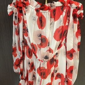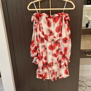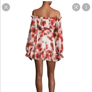 🤍NICHOLAS Poppy Floral Off-the-shoulder Silk mini Dress Red/white ❤️