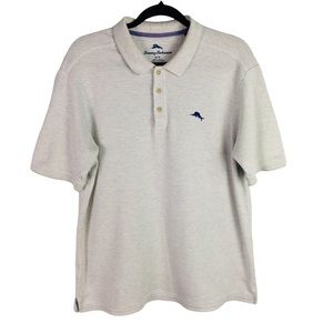 Tommy Bahama Mens Polo Shirt Size Medium Suprima Cotton Blend Polo White Gray