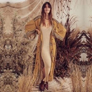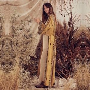 SOLD OUT Mustard Tribal Aztec Western Self Tie Kimono Duster Wrap Bohemian Robe