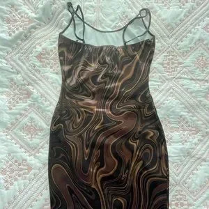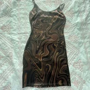 Bear Dance Brown Groovy Print Mini Dress Size Medium