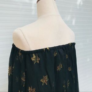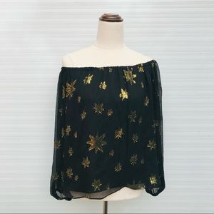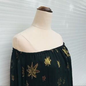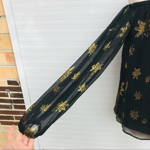 BEC & BRIDGE Black Sheer Cold Shoulder Top Silk Gold Stars Casual Dressy Size 8