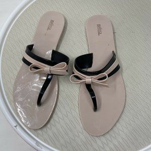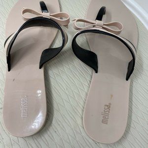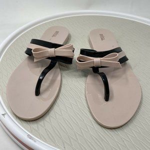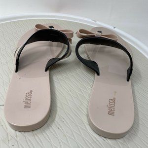 Melissa Shoes Jelly Sandals Flip Flops 10 Bow Vegan Plastic Pink Black Brazil