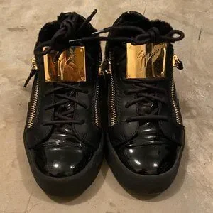 Gently Used Authentic Giuseppe Zanotti Sneakers with Gold Plate and Fur (Size 35, US5).