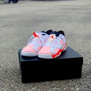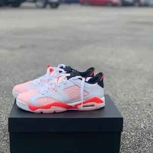 Jordan 6 lows in white and soft pink perfect color combo. Very sleek shoe. Will be shipped with original packaging. Sizes 5.5 and 6.5 GS
