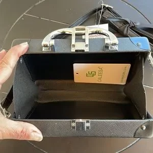 Super cute and fun small boom box purse with silver hardware and comes with a long adjustable strap. 7.5 L x 4.5 H x 2 W