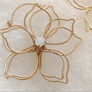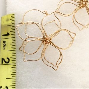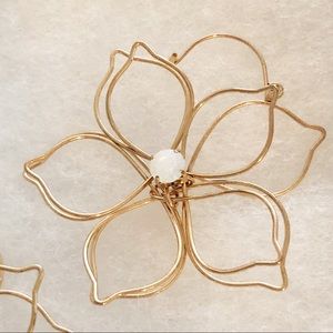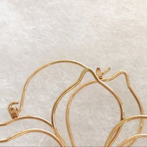 Gold Tone Wire Gardenia Flower Hoop Earrings with jewel