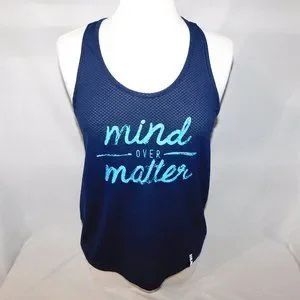 This Womens Small Under Armour Heat Gear Blue Graphic Activewear Running MIND OVER MATTER Tank Top is in Great clean bright condition. Tank is Machine washable. Features sheer mesh like fabric.