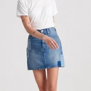 Lucky Brand Patchwork Color Block Denim Mini Skirt 26