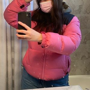 The North Face Womens Nuptse Pink and Black 700 Puffer