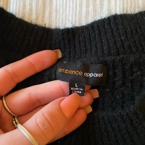 This sweater is in good condition. It has a few pills but those can be removed with a pill remover. This sweater also fits more like a medium than a large.