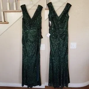Cinderella Emerald Green Sequin V-Neck Formal Gown 14