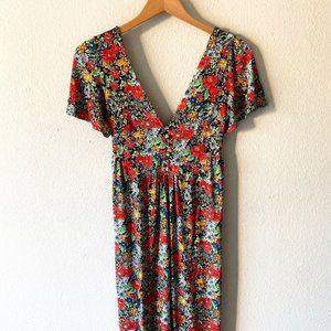 Asos vibrant multicolored floral vneck maxi short sleeve dress size 4