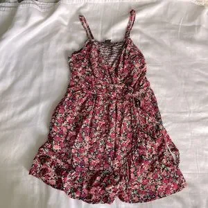 Floral romper with a side tie. Super cute! Too big on me.