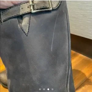 Steve Madden gray leather boots with studded straps good used condition, they are meant to look distressed, however there is one scratch on the side. (Picture shown)