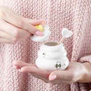 Kate Aspen Sweet As Can Bee Ceramic Honey Pot with Wooden Dipper (Set of 4)