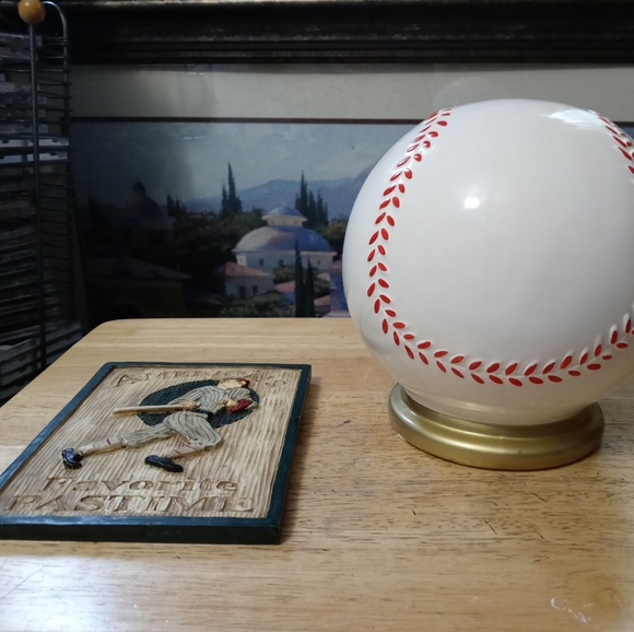 CERAMIC BASEBALL, AND WALL PLAQUE ART