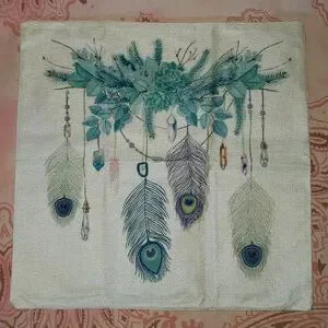 Peacock Feathers Pillow Case. Crystals Succulent Boho Chic Beautiful