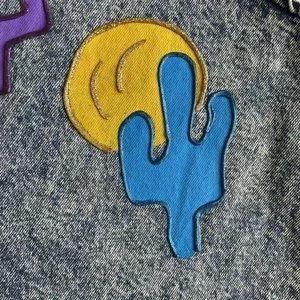 Vintage 80s 90s Hand Painted South Western Acid Wash Denim Vest MEDIUM