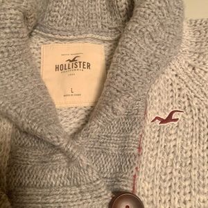 Hollister gray/cream thick button up cardigan with pockets size large. 40% wool 30% nylon 30% acrylic