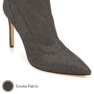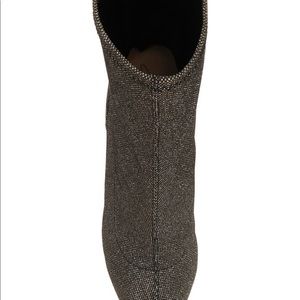 Glittering fabric adds everyday sparkle to a tall, stretchy boot with a slender heel and pointy toe. 4" heel; 5 3/4" shaft; Back zip closure; Textile upper/ ...