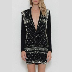 A fresh take on the classic tuxedo style dress, we love the pearl and beading detail. Sexy but still classy, you can also wear a black cami for an occasion where the dress code is more conservative. The Pearl Tuxedo Dress looks great with strappy black stilettos