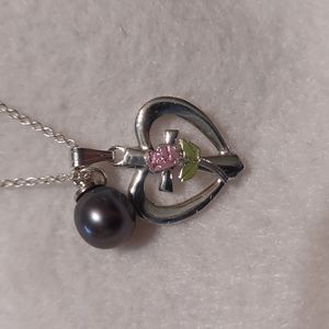1990s to 2000s sterling silver, pearl and clear glass necklace by Vantel Pearls