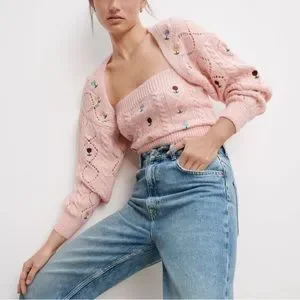 NWT ZARA PINK POINTELLE KNIT CROPPED CARDIGN