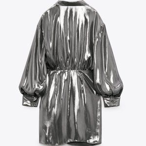 ZARA SILVER LAPEL SURPLICE WRAP EFFECT V NECK LAMINATED METALLIC DRESS $119