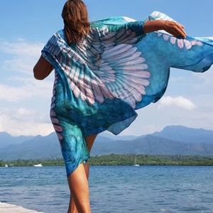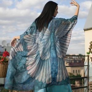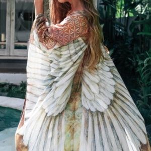 Bohemian Feather Wings Geo Print Kimono Beach Cover up