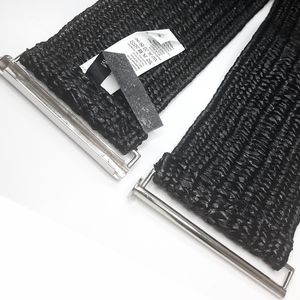 (90's-Y2K) wide high waist boho black straw woven stretchy elastic belt with silver tone narrow pencil-like buckle.
