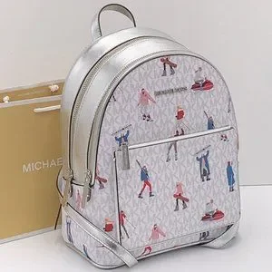 Michael Kors Jet Set Girls Adina Medium Backpack Bright White Silver Multi