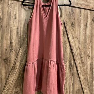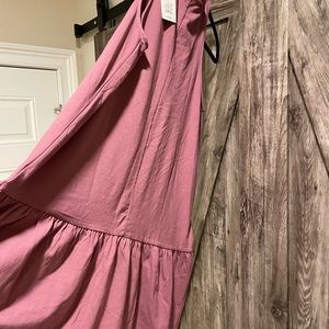 NEW with tag plum colored peplum tank dress in T-shirt fabric with v-neck and seamed back that adds visual length; from a smoke free doodle friendly home