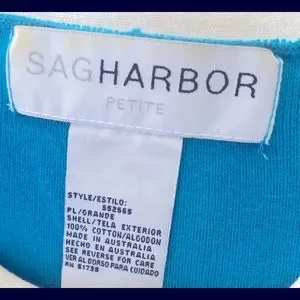 This beautiful shade of blue with white stripes Sag Harbor sweater top enhances any outfit!