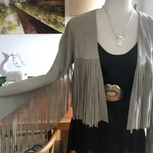 Suede Fringe Jacket. Dove grey S