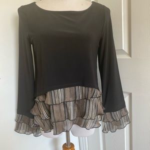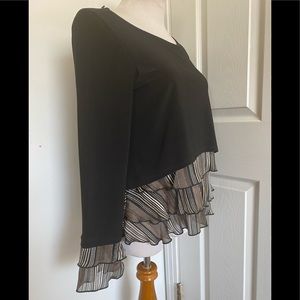 Joseph Ribkoff Black/Gold Ruffle Trim Top