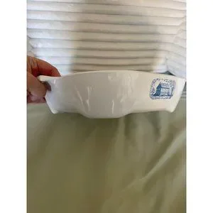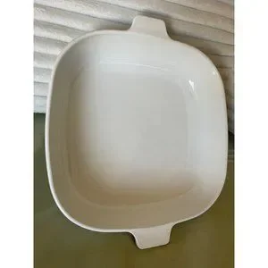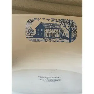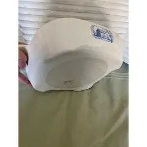 Vintage Amana Radarange by Corning White with Blue Colonial House Design Browning Casserole Baking/Serving Dish. No Lid. Measures: 9.5" x 9.5 "x 2". Vintage 1970's. Preowned, Better than normal wear. No breaks, chips, cracks or major damage. Has some light marks on the very bottom and 1 very small mark on the inside side bottom (see last pic). Clean, smoke-free home.
