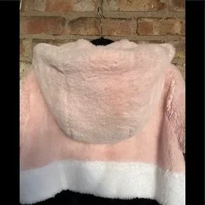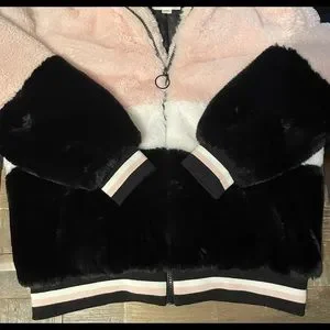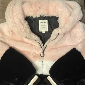 EUC. Garage faux fur plush varsity jacket. Oversized hood, front slip pockets. Ribbed banded cuffs and hem. Full zip, lined. So soft! Approximately 22” pit to pit, 24” shoulder to hem🖤