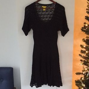 CATHERINE MALANDRINO black lace stretch dress S drop-waist