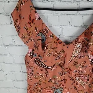 Willow & Clay floral flower ruffle front slit maxi dress. Excellent pre-owned condition. Pit-to-pit measurement is approximately 19", waist circumference 32".